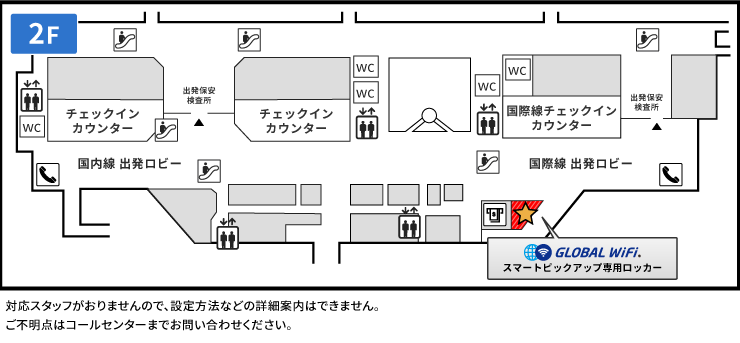 グローバルWiFiカウンター場所:グローバルWiFiカウンター(対人)はありません。