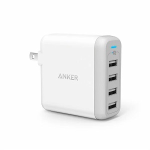 4つのUSBポートが1つになったACアダプター。1つのコンセントで同時に充電可能です。